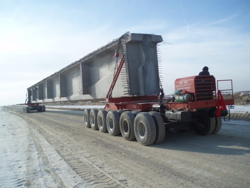 運(yùn)梁車是為公路橋梁架設(shè)專門設(shè)計(jì)的預(yù)制梁運(yùn)輸機(jī)械?! ≥喬ナ竭\(yùn)梁平車主要適用于預(yù)制梁場(chǎng)與架橋工地較遠(yuǎn),不適合鋪軌或鋪軌費(fèi)用較高的場(chǎng)合。運(yùn)梁車的剎車系統(tǒng)對(duì)縱坡有較大的適應(yīng)性。輪胎與地面摩擦阻力比軌道式運(yùn)梁車有顯著的優(yōu)勢(shì)。本車具有載重量大、自行式、運(yùn)輸不受距離***。性能可靠,安全設(shè)施齊全,整機(jī)結(jié)構(gòu)合理,運(yùn)轉(zhuǎn)平穩(wěn)操作舒適,維修方便,抗傾覆穩(wěn)定性好,生產(chǎn)效率高等特點(diǎn)。